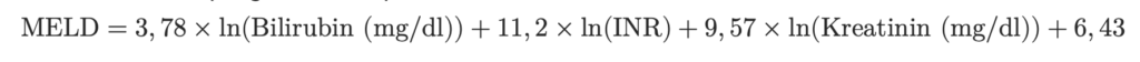 - Werte kleiner als 1,0 mg/dl für Bilirubin, Kreatinin oder INR werden zur Vermeidung negativer Werte auf 1,0 gesetzt.